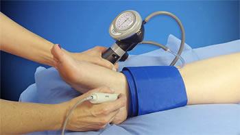 A non-invasive test that uses inflatable cuffs to gauge circulation (blood flow) and measure blood pressure in the arteries at various locations on the thigh, calf, foot and toes. Done in an outpatient clinic or vascular laboratory. Minimal, brief discomfort, similar to what you feel while having a routine blood pressure test with an inflatable arm cuff.